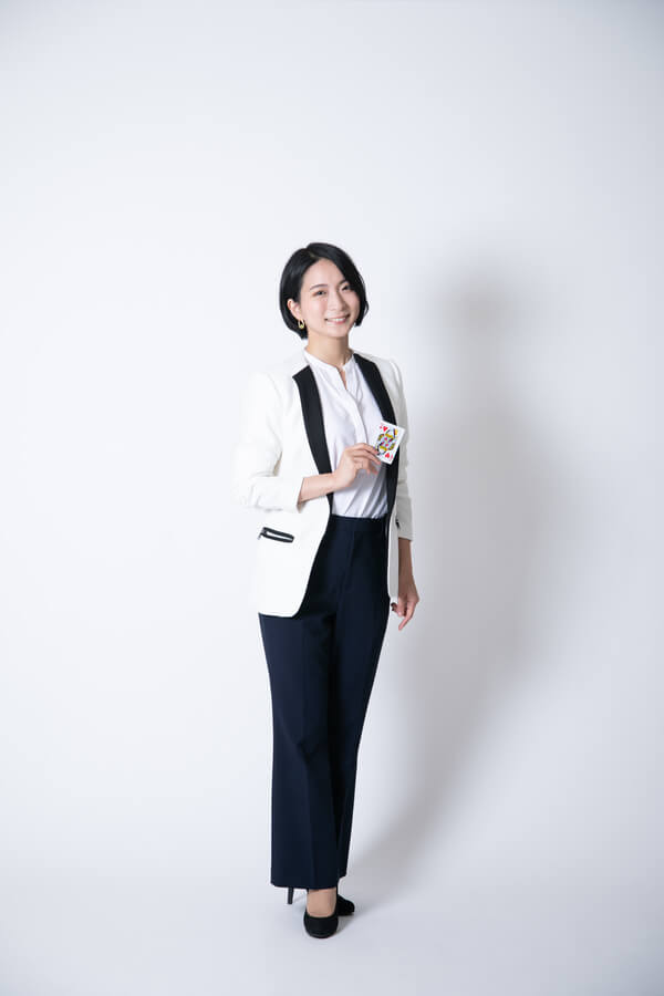 テーブルマジックからイリュージョンまで幅広い演目をこなし、軽快なトークにも定評がある。