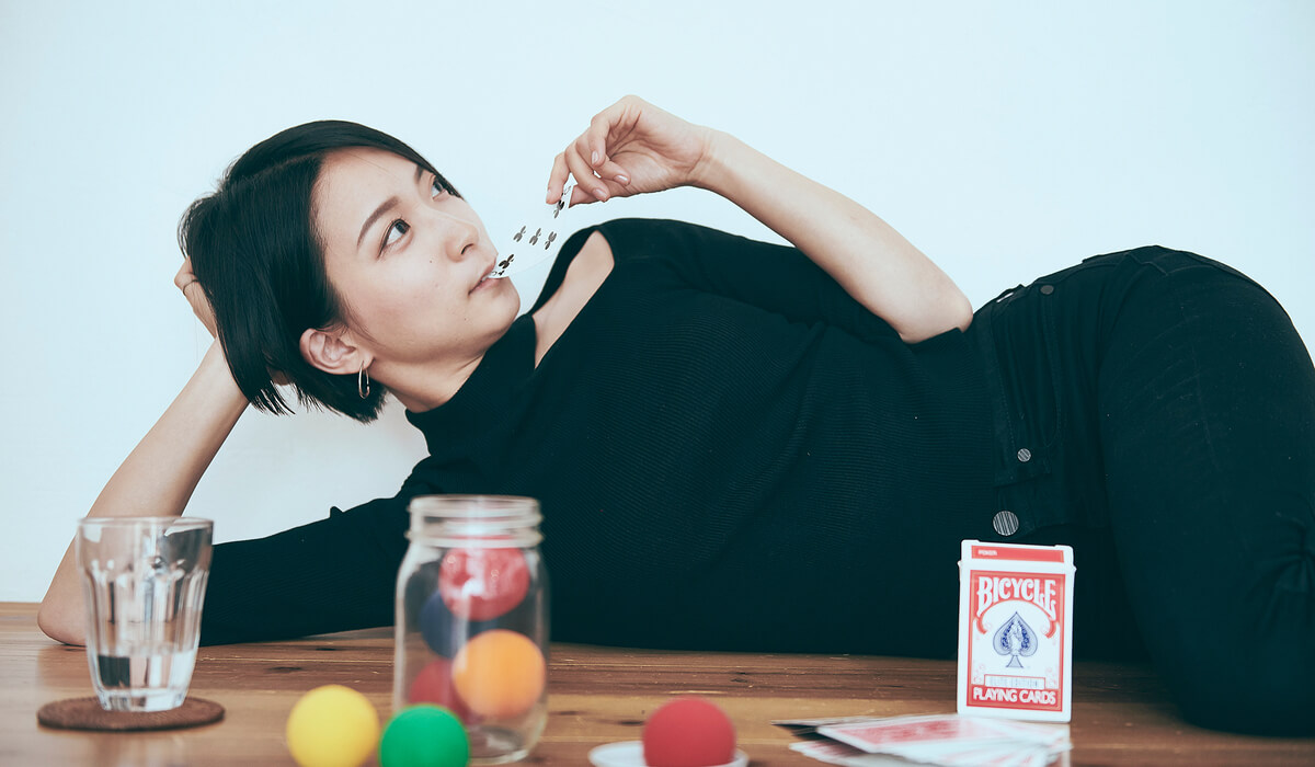 リボンや毛糸など通常マジックでは使わないような素材から、トランプやコインなどマジックでお馴染みのアイテムまでを使い、至近距離で体験していただくスタイルのマジック。